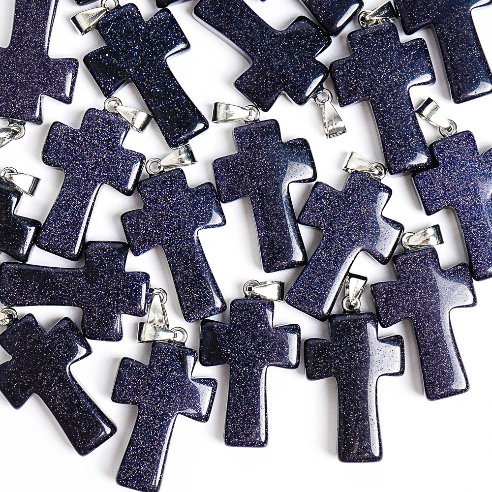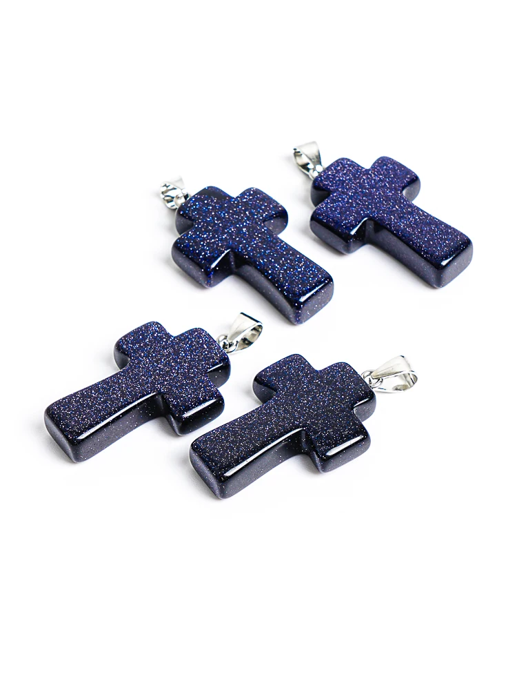 1Pcs Handmade 31X21X7MM Night Sky Blue Goldstone Cross Pendant Natural Stone Necklace for Good Luck & Positive Energy