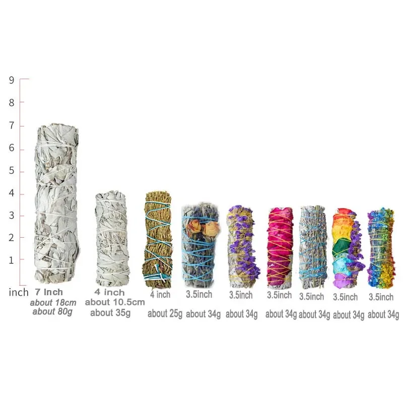 1pcs Incense White Sage Bundle Smudge Sticks Home Purification Smoky Grass Cleaning Reiki Meditation Energy Cleansing Bundles