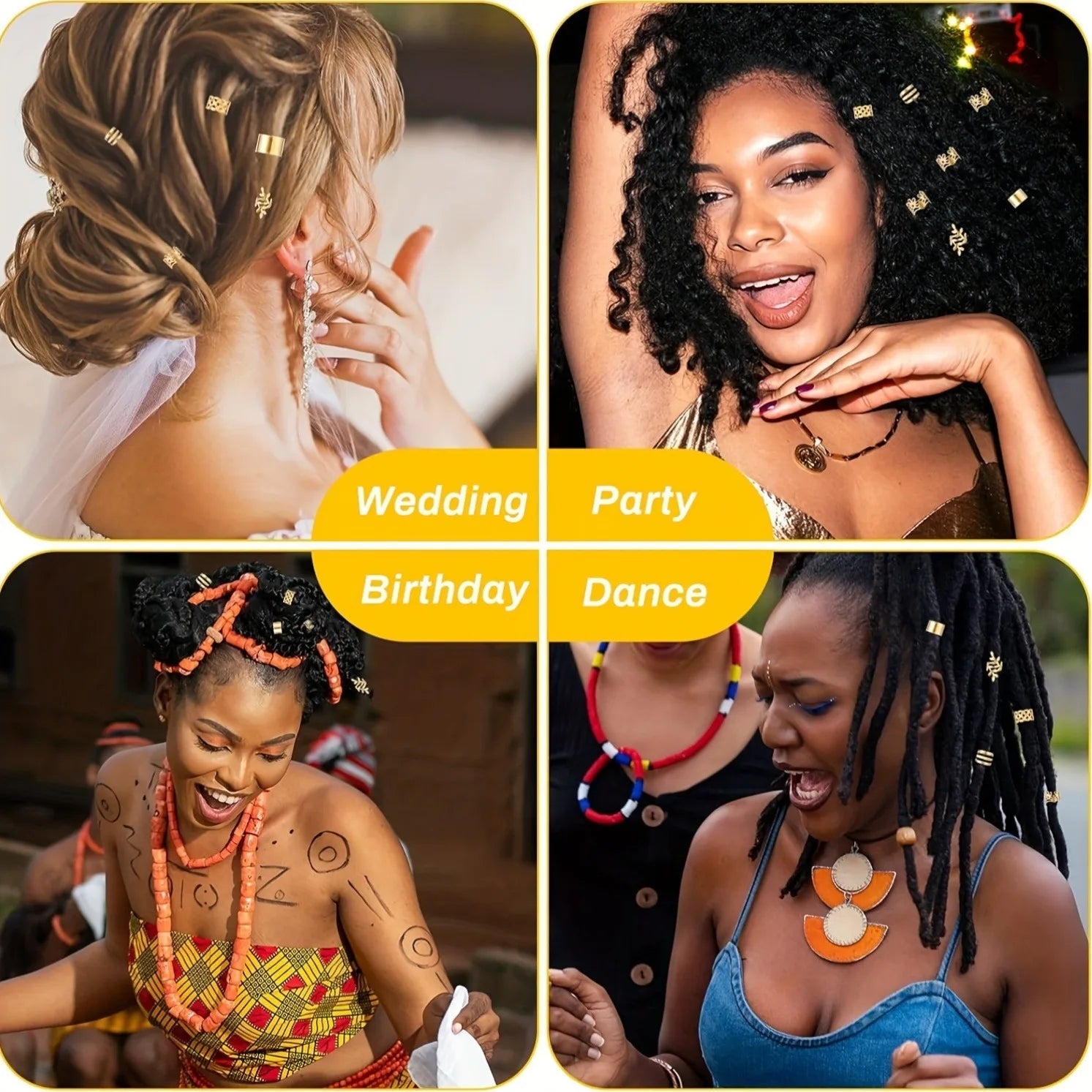 50pcs DIY Wig Hair Accessories Set, Alloy Golden Ring Clips & Hairops, Elegant & Cute Round Hair Pendants with Hollow
