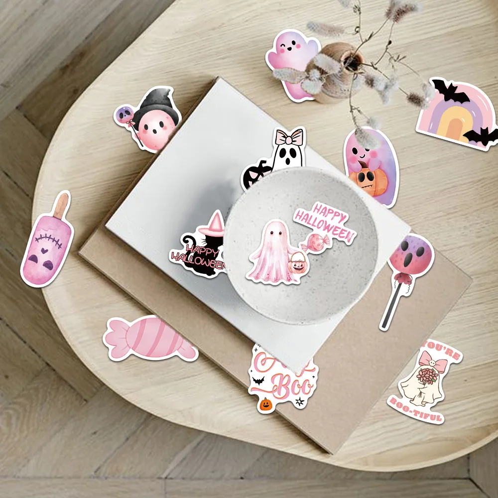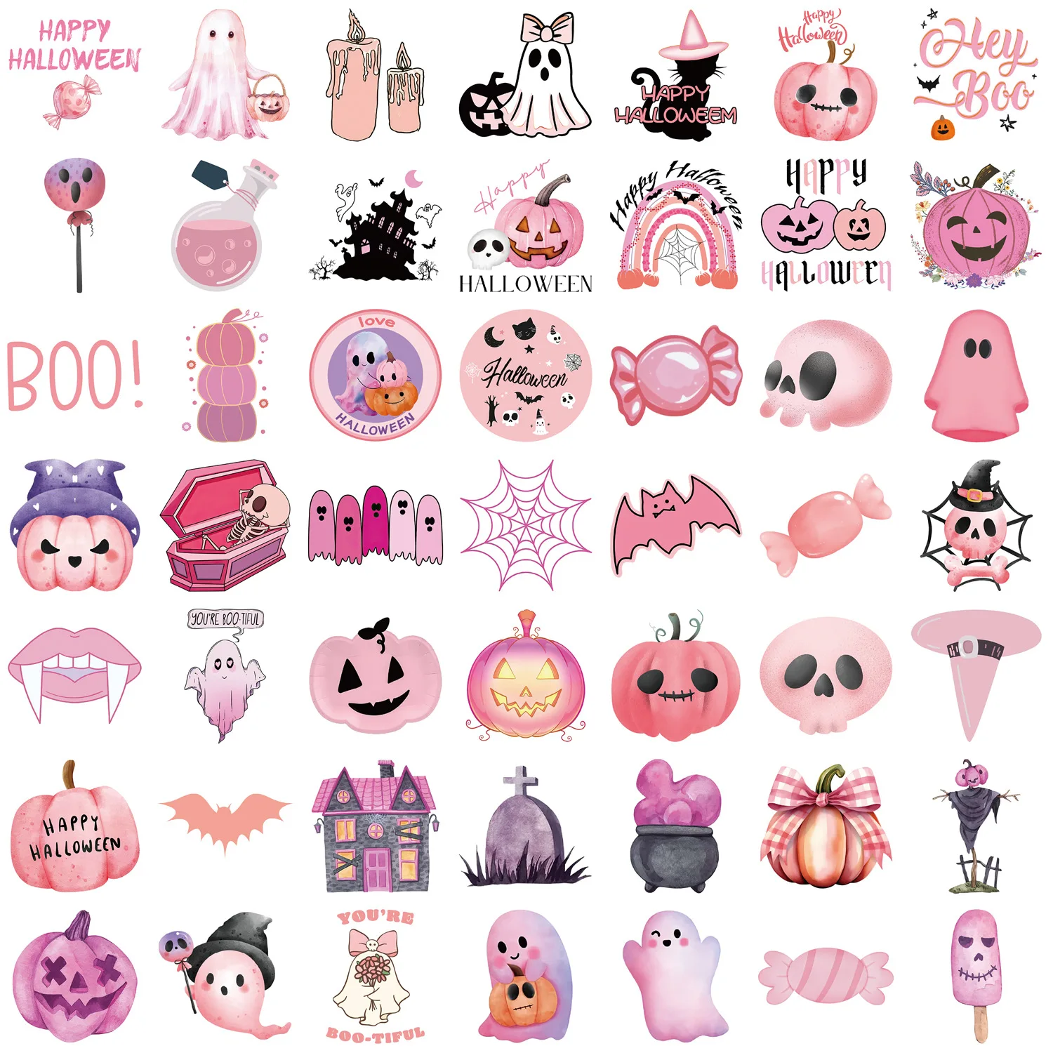 50PCS Kawaii Pink Halloween Ghost Skull Pumpkin Stickers Notebook Guitar Skateboard Waterproof Cute Decorative Sticker Toy