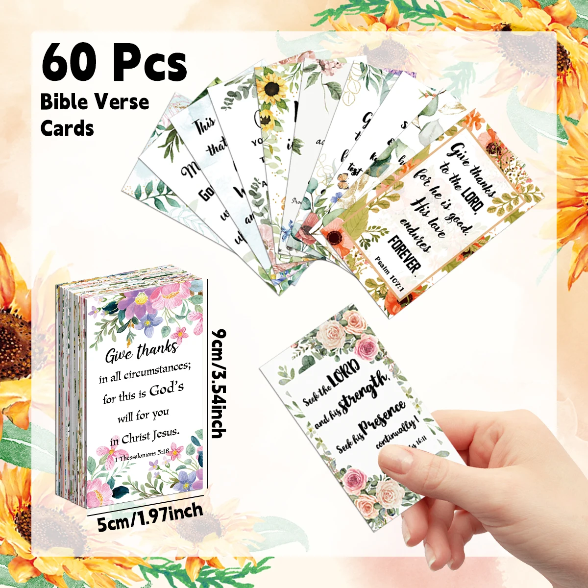 60pcs/pack Floral Bible Verse Cards Prayer Cards for Women Mini Scripture Cards Inspirational Quote Cards Christian Gifts