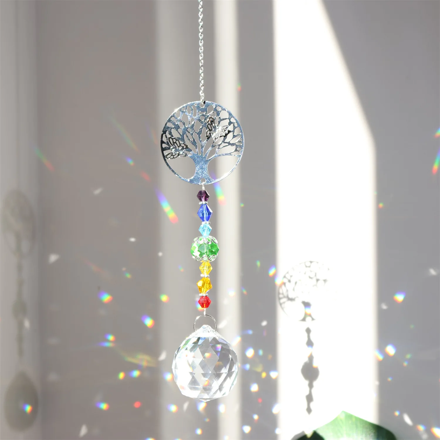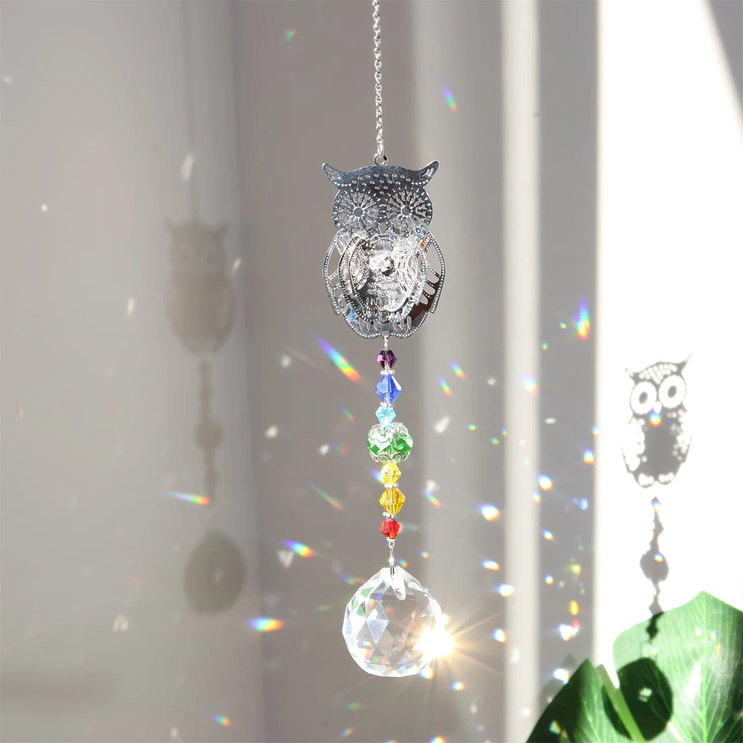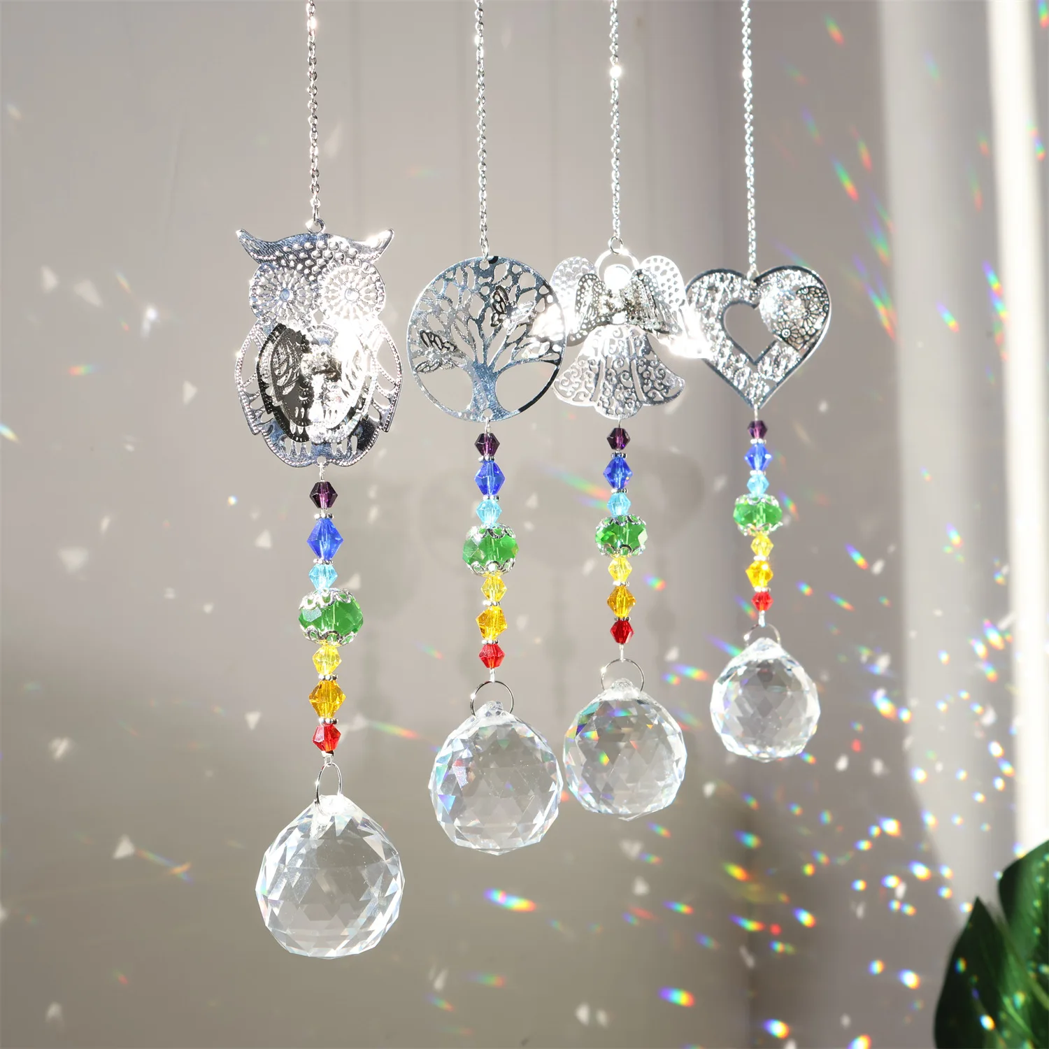Crystal Sun Catcher Metal Piece Owl Tree Love Fan Angel Pendant Suncatcher Outdoor Garden Decor Rainbow Maker Home Decors 2024