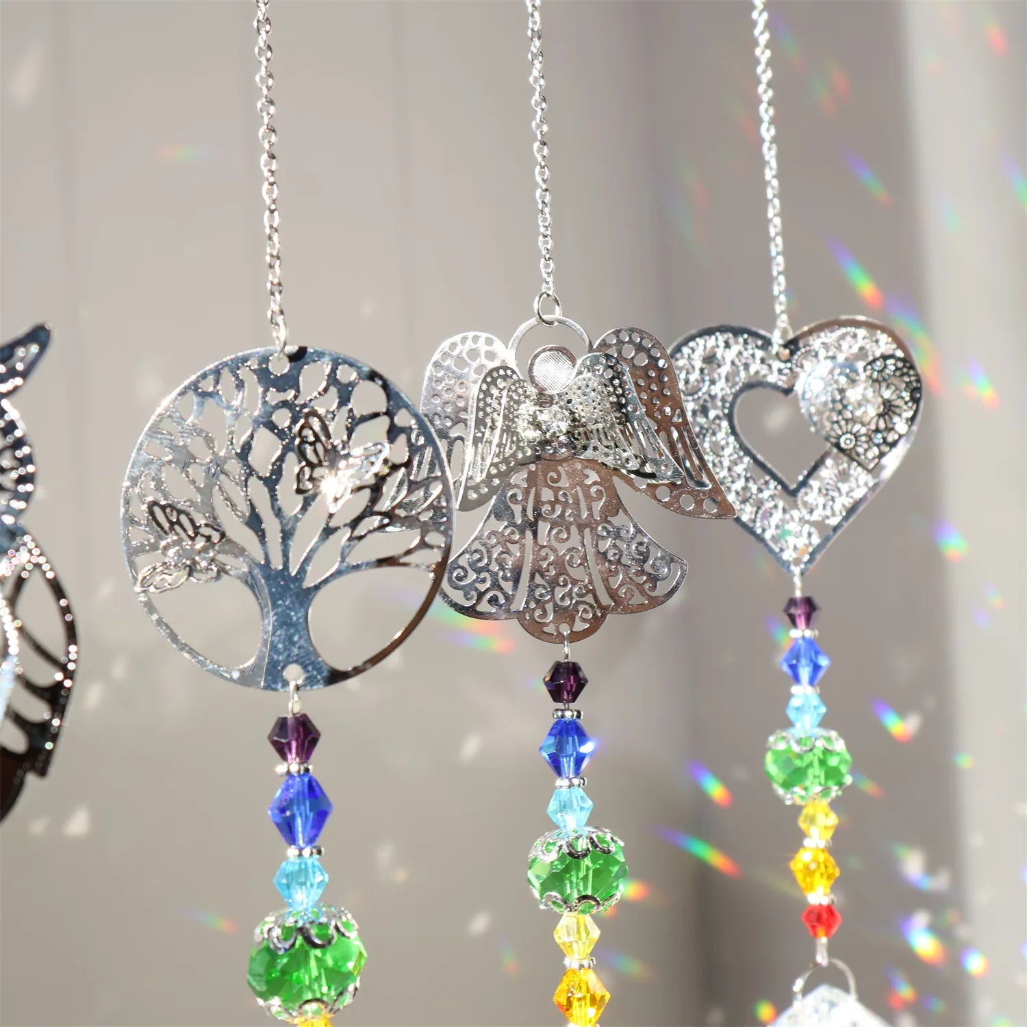 Crystal Sun Catcher Metal Piece Owl Tree Love Fan Angel Pendant Suncatcher Outdoor Garden Decor Rainbow Maker Home Decors 2024 New In