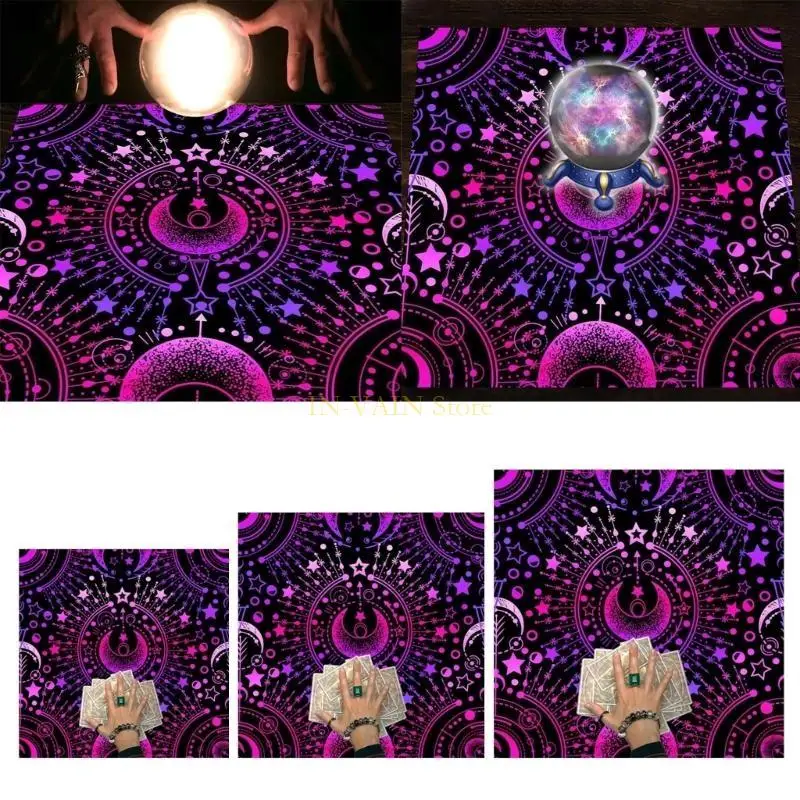 M5TC Mysterious Moon Astrologys Tablecloth Table Mat Square Divinations Tapestry Tarots Card Tablecloth Witchcraft Deck Cloth